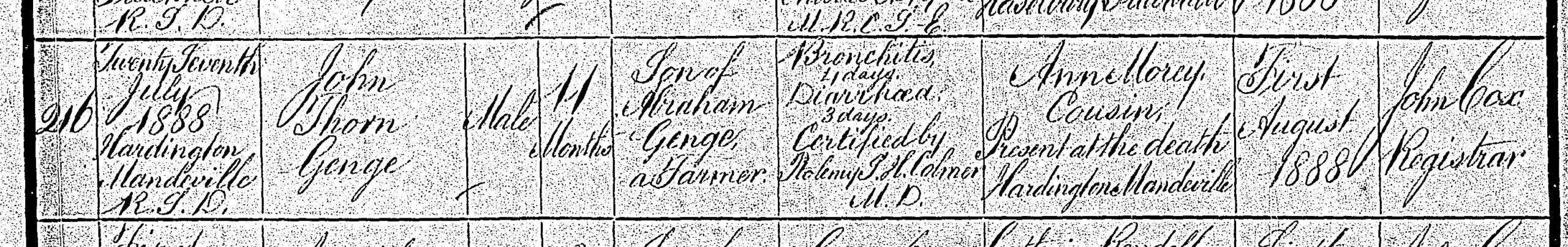 [18] Death certificate of John Thorn Genge.