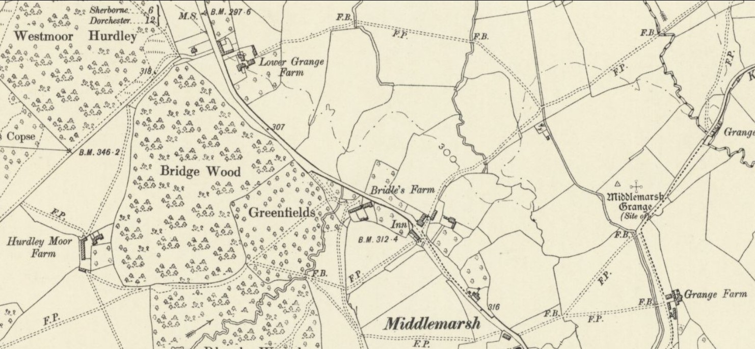By 1881, Philip occupied 190 acres and employed three men on his farm, which was part of the Middlemarsh Estate. The farm had two names: when the estate was sold in 1912, it was listed “Lower Grange or Manor Farm, Middlemarsh,” a holding of 132 acres.[viii] An account of a footpath dispute in 1935 referred to it as “Manor Farm, Middlemarsh, commonly called locally Lower Grange Farm,” providing furtherThe clarification.[ix]