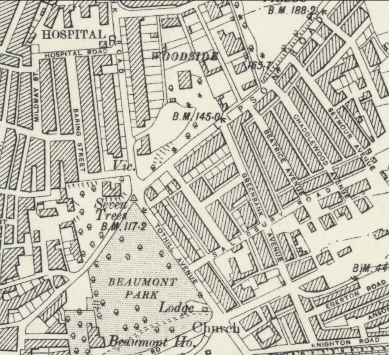 1892-93 OS map of Plymouth showing Lipson Road and Beaumont Park.