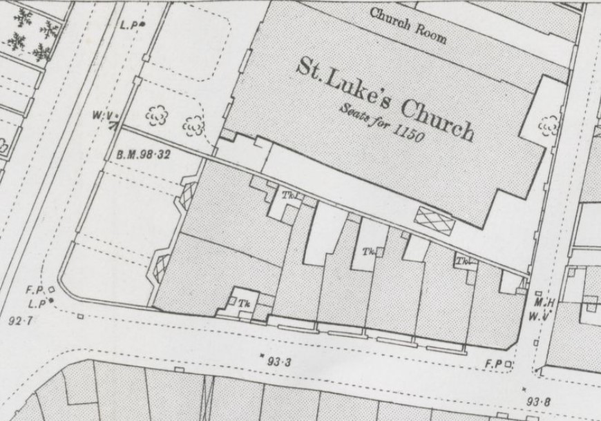1892 OS map of St Luke's Church, Plymouth.