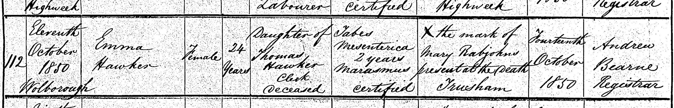 Emma Hawker's death certificate.