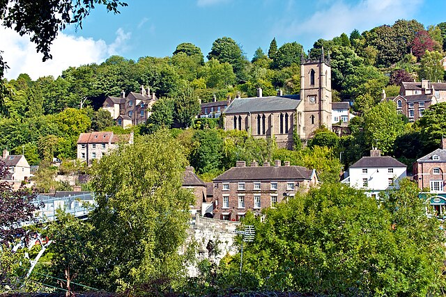 Isaac was presented to the living by Rev. George Edward Yate, M.A., the vicar of Madeley, who was the patron because the parish was formed out of Madeley in 1845.[62] The net yearly value of the benefice in 1891 was £170, which was low. Ironbridge was a market town with a population of 2,739 in 1891. It had a railway station, several dissenting chapels, a church school, a Wesleyan school, and the Madeley workhouse.[63] The church, built in 1836, accommodated about 1,100 people.[64]