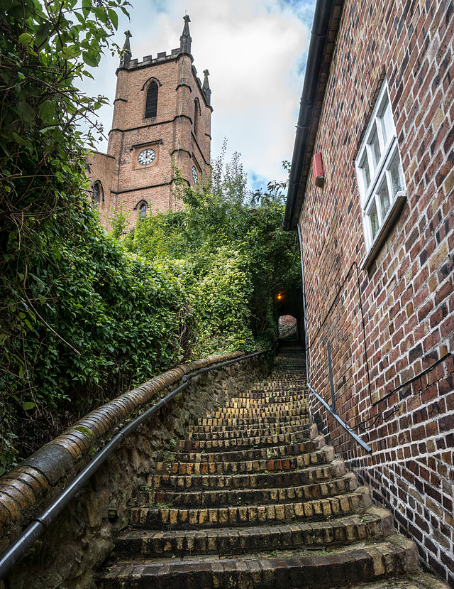 Steps leading to the Church of St Luke, Ironbridge (Colin).