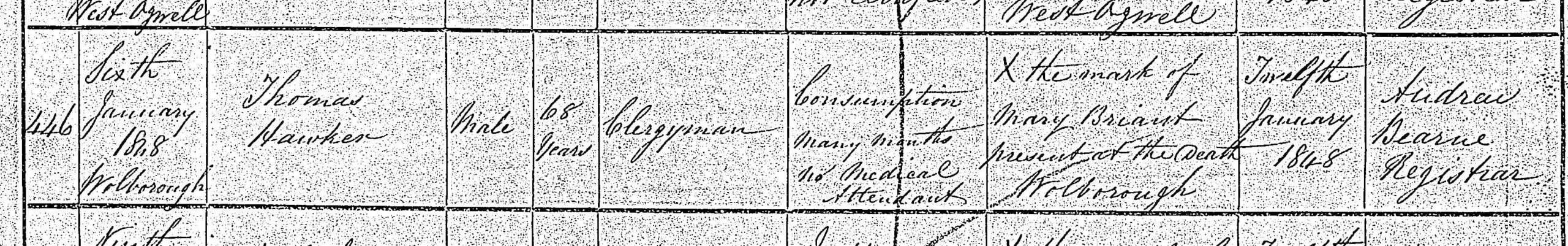 Thomas Hawker's death certificate.