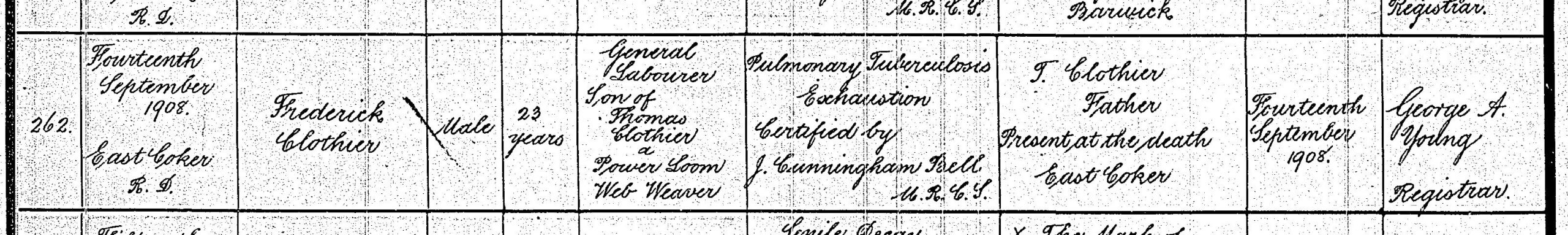 [28] The death certificate of Frederick Clothier.