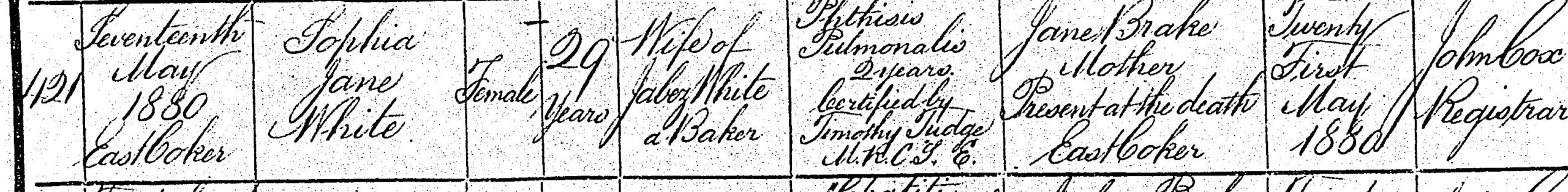 [13] Death certificate of Sophia Jane White; Western Gazette, 21 May 1880, p.8.